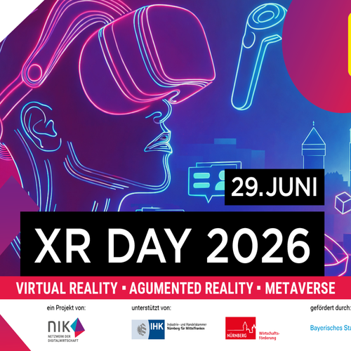 Der XR HUB Bavaria Nürnberg ist ein vom Bayerischen Staatsministerium für Digitales gefördertes und von der Stadt Nürnberg unterstütztes Projekt, das die Entwicklung und Anwendung von Extended Reality (XR) Technologien in der Metropolregion fördert. Der XR HUB bietet Beratung, Unterstützung, Netzwerkveranstaltungen sowie Aus- und Weiterbildungsveranstaltungen für Unternehmen und Interessierte im Bereich Extended Reality (XR).