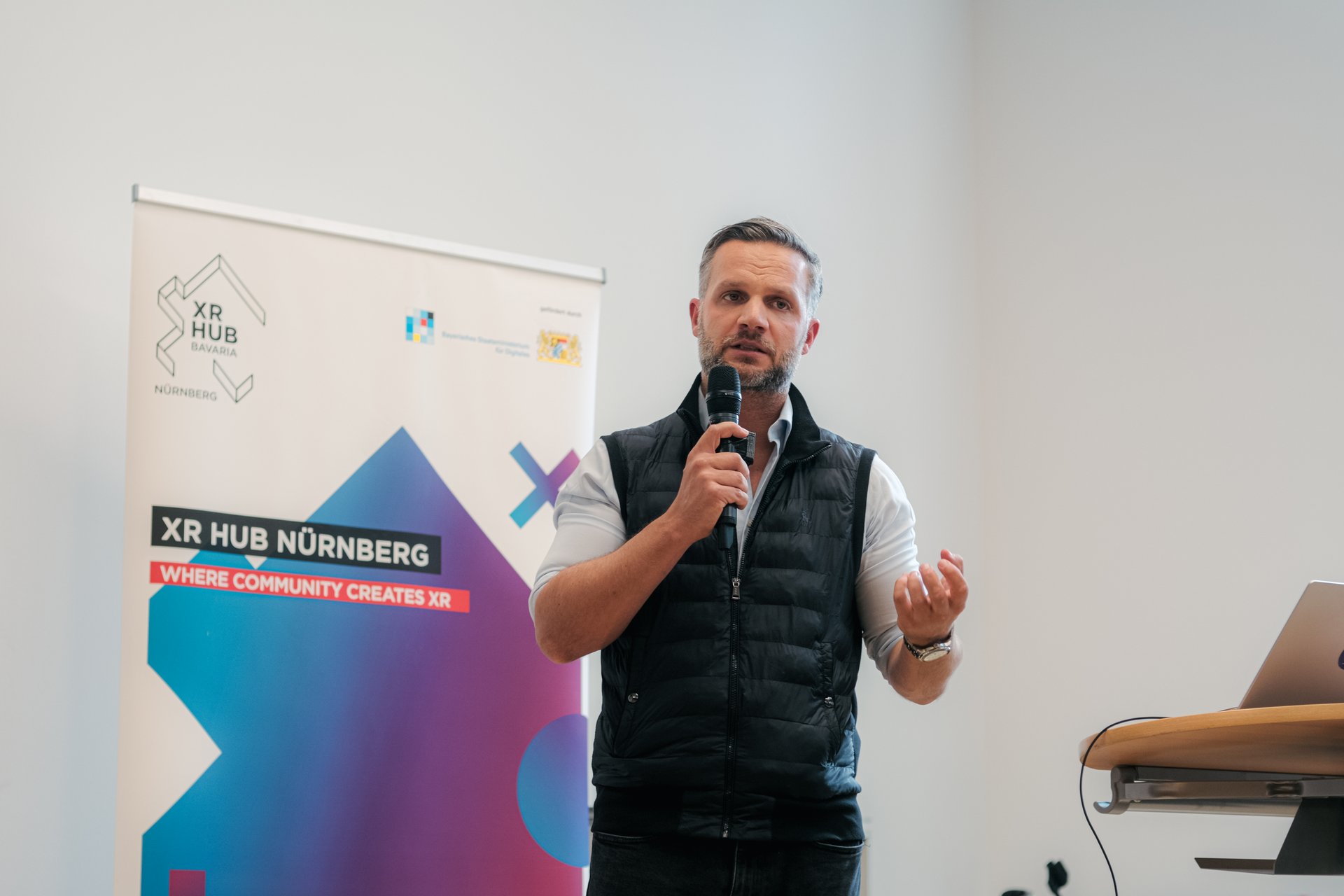 Ihm folgte Johannes Bisping, Vizepräsident der IHK, der die Bedeutung der Veranstaltung für die regionale Wirtschaft hervorhob. Abschließend betonte Dr. Andrea Heilmaier, Referentin für Wirtschaft und Wissenschaft der Stadt Nürnberg, die Rolle von XR-Technologien für die digitale Transformation und den wirtschaftlichen Fortschritt der Region.