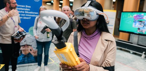 Anschließend sprach Dr. Fabrizio Palmas von Straightlabs zum Thema "Heute lernen, morgen führen: Mit immersiven Technologien die Zukunft gestalten". Sein Vortrag zeigte, wie XR-Technologien das Lernen und Arbeiten revolutionieren können.