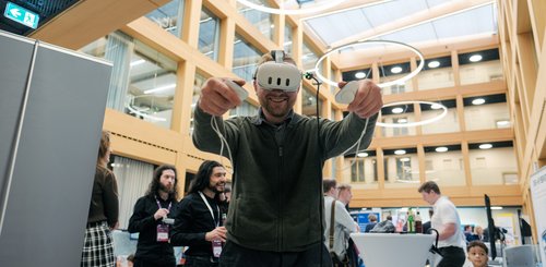 Die erste Keynote des Tages hielt Benjamin Keller von Meta, der in seinem Vortrag "Beyond Physical Reality" die neuesten Entwicklungen und Visionen im Bereich der XR-Technologien vorstellte.