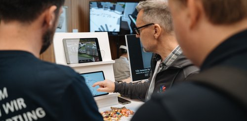 Ab 16:30 Uhr öffnete die große XR-Ausstellung mit einem umfassenden Hands-on-Angebot. Egal ob der VR-Schneepflug- oder Drohnensimulator, interaktive Display, 3D-Scans & Gaussian Splatting, Games oder VR-Hardware: Alles konnte beim XR DAY ausprobiert und diskutiert werden. Dabei konnten sich die BesucherInnen mit den EntwicklerInnen und Unternehmen austauschen.