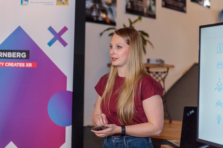 Nach einem Grußwort der Staatsministerin für Digitales Judith Gerlach und der Geschäftsführerin des Netzwerks der Digitalwirtschaft Inci Strauß, ging es dann auch schon los mit spannenden Vorträgen und Workshops der extra angereisten ‚XR Role Models‘ Lucia Grom-Baumgarten und Alexandra Ginger.